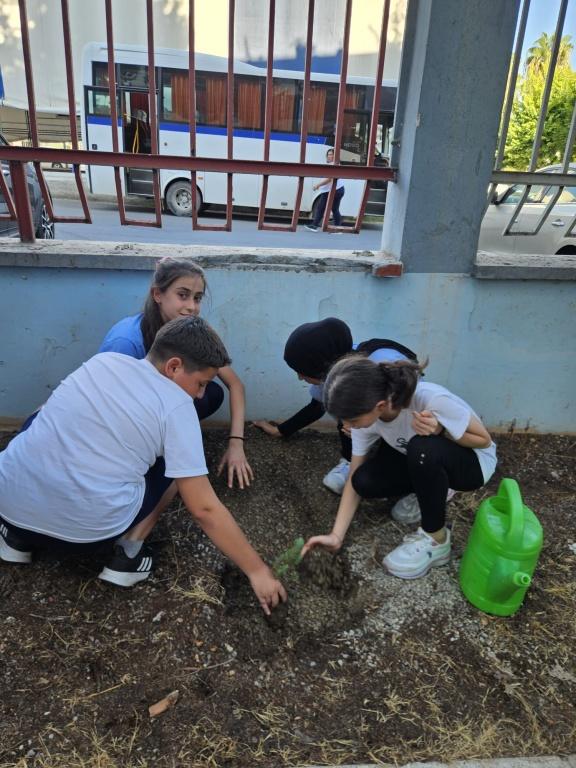 Milli Eğitim Bakanlığı'nın düzenlediği "Yeşil Vatan-Benim Okulum Geleceğe Çare" projesinin fidan dikim etkinliğini, Orman Bölge Müdürlüğü'nden temin ettiğimiz fidanlarla, okulumuzun bahçesinde belirlediğimiz yerlerde öğrencilerimizle birlikte gerçekleştirdik.